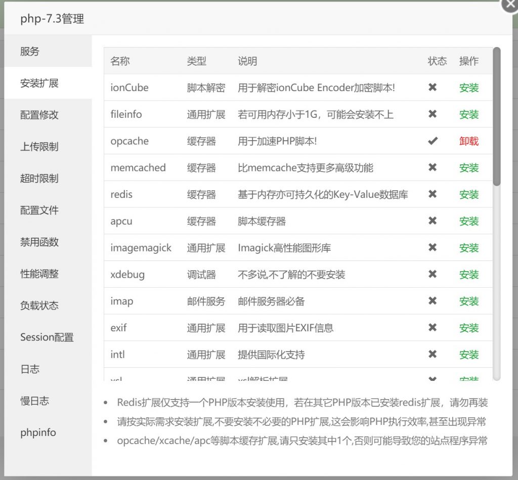 1、打开宝塔面板找到软件商店,点击已安装, 选择你安装的PHP。