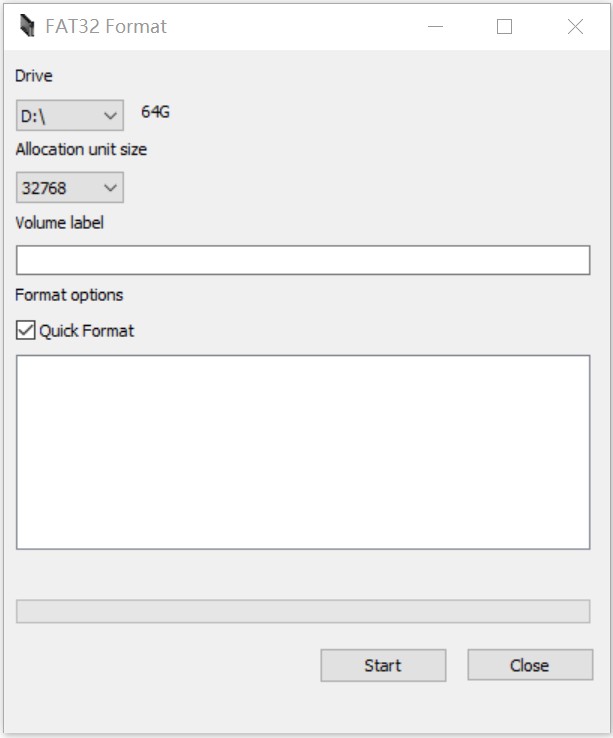 FAT32 Format又名GuiFormat,下载地址可自行Google或者百度搜索。FAT32 Format是绿色软件,身材小巧,只有72KB。软件运行后界面如图: