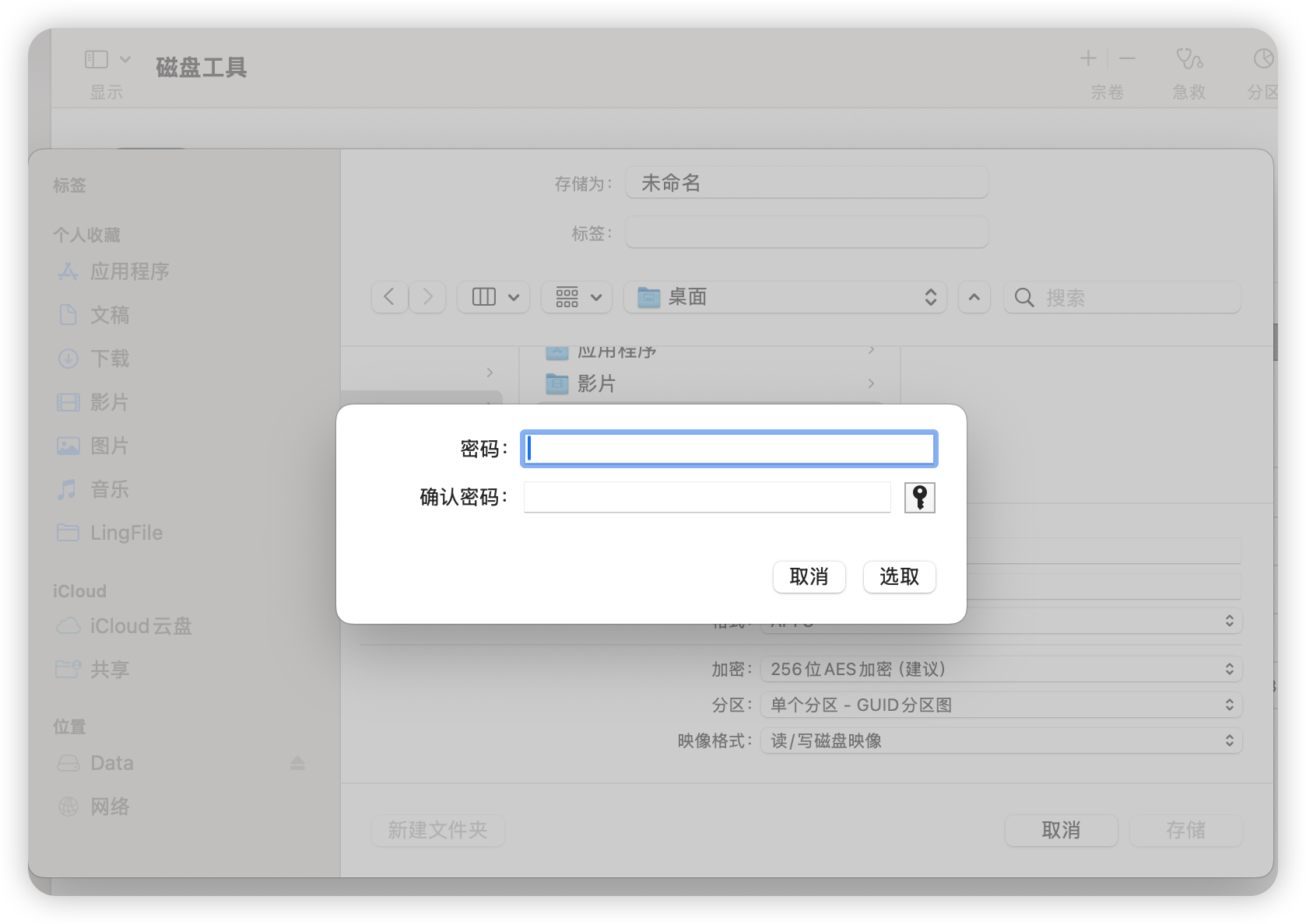 MacOS自带的“磁盘工具”可以创建dmg格式的磁盘映像,磁盘映像 可以设置为加密形式,需要输入密码才可以打开查看里面的文件、文件夹,这样也相当于可以给文件、文件夹加密。