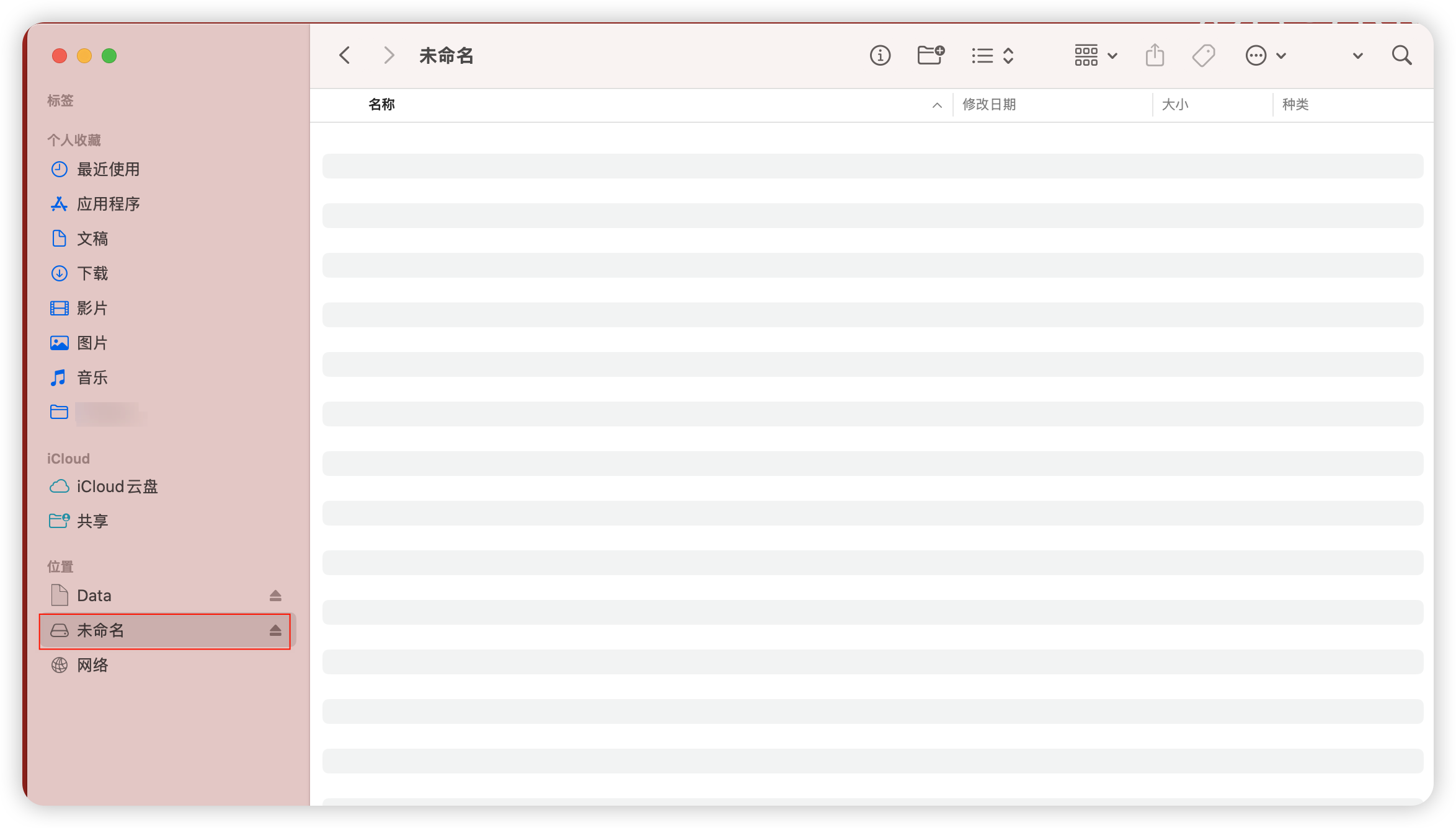 4、点击“存储”后,会在指定位置生成dmg格式的磁盘映像文件,同时也会自动进行挂载,在访达的左侧可以看到,此时可以将需要加密的文件拖到这里面来。